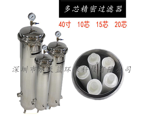 多芯精密過濾器是一種常見的過濾設備,可以用來過濾原水中殘存的微量懸浮顆粒、膠體、微生物等,隨著制水時間的增長,濾芯因截留物的污染,其運行阻力逐漸上升,當運行至進出口水壓差達0.1MPa時,應更換濾芯。多芯精密過濾器采用成型的濾材,在壓力的作用下,使原液通過濾材,濾渣留在管壁上,濾液透過濾材流出,最終達到過濾的目的。
